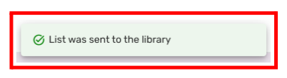 Once you click the MY LIST IS READY button and click SEND, a new dialogue box will appear with the remarks LIST WAS SENT TO THE LIBRARY, and the status of your list will change from BEING PREPARED to READY FOR PROCESSING.